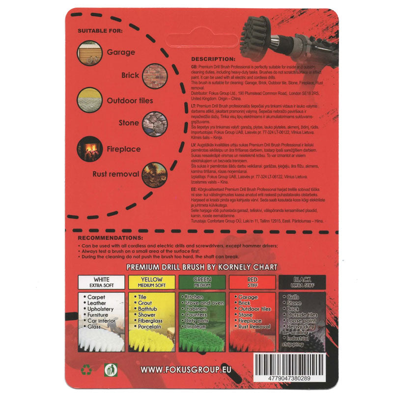 The Kornely premium drill brush completes all cleaning tasks easily, quickly and at an excellent level. The professional premium brush from Kornely is specially created to perform various cleaning tasks quickly and at an excellent level. Premium drill brushes are perfectly suited for cleaning tasks indoors and outdoors, including the heaviest jobs. The brushes will not scratch the surface or damage the paint. This red brush is created for rigid cleaning.